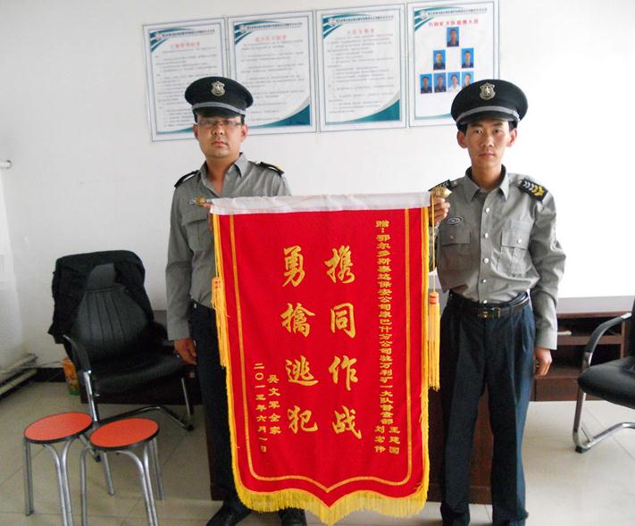 2013年6月1日上午10點(diǎn)左右被撞小孩父親吳文軍代表全家來到鄂爾多斯泰達(dá)保安公司康巴什分公司萬利礦一大隊(duì)對(duì)督查部王建國與劉宏偉同志表示感謝并贈(zèng)送錦旗一面,現(xiàn)金2000元。但是兩位同志堅(jiān)決的拒絕了現(xiàn)金,接受了“協(xié)同作戰(zhàn)、勇擒逃犯”的錦旗。