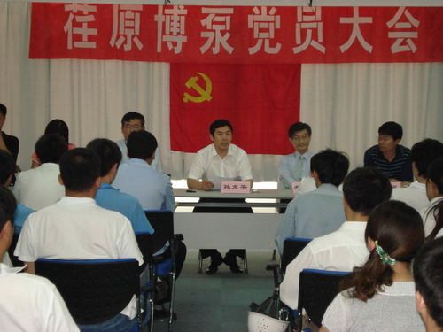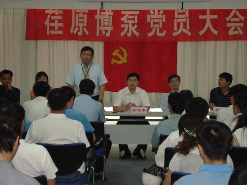 本次黨員大會(huì)由黨總支副書記姜作棟同志主持,他首先介紹了黨組織機(jī)構(gòu)的組成:張玉琴同志任黨總支書記,姜作棟同志任黨總支副書記,李正民同志、劉擁民同志、王興春同志分別任統(tǒng)戰(zhàn)委員、組織紀(jì)檢委員、文體宣傳委員。荏原博泵黨總支下設(shè)管理、生產(chǎn)、質(zhì)量和業(yè)務(wù)技術(shù)四個(gè)黨支部,管理黨支部書記由邱建剛同志擔(dān)任,生產(chǎn)黨支部書記由宋遵民同志擔(dān)任,質(zhì)量黨支部書記由郝圣同志擔(dān)任,業(yè)務(wù)技術(shù)黨支部書記由梁文運(yùn)同志擔(dān)任。各黨支部通過民主選舉選出了支部委員。在會(huì)上,黨總支書記張玉琴同志向全體黨員提出要求,一是加強(qiáng)學(xué)習(xí),提高素質(zhì);二是增強(qiáng)黨性,努力工作;三是加強(qiáng)領(lǐng)導(dǎo),發(fā)揮作用。著重強(qiáng)調(diào)了全體黨員不僅要有較高的政治素質(zhì),更要有很強(qiáng)的業(yè)務(wù)能力和技術(shù)水平。要一如既往的發(fā)揮黨員的先鋒模范作用,以企業(yè)經(jīng)濟(jì)發(fā)展為中心任務(wù),身先士卒,帶頭努力干好工作,在營造團(tuán)結(jié)和諧的工作氛圍中發(fā)揮作用。公司總經(jīng)理孫龍平同志在黨員大會(huì)上代表行政領(lǐng)導(dǎo)班子作了重要發(fā)言,指出目前公司正處在打基礎(chǔ)的關(guān)鍵時(shí)期,邊建設(shè)、邊生產(chǎn)、邊供貨、邊發(fā)展。黨組織要充分發(fā)揮政治核心作用,領(lǐng)導(dǎo)工會(huì)、共青團(tuán)等群眾組織,團(tuán)結(jié)凝聚廣大員工,貫徹黨的方針政策,促進(jìn)企業(yè)健康發(fā)展。
