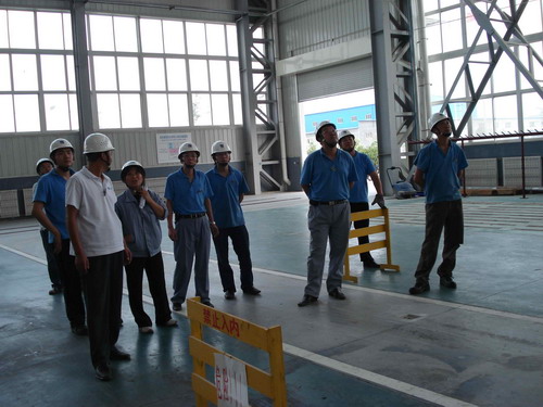 此次預(yù)演活動(dòng)的主要內(nèi)容是,吊車在運(yùn)行過程中突然停電后工作人員的應(yīng)變能力。演習(xí)開始了,首先,停電后吊車工先把開關(guān)手柄放置到“零位”并監(jiān)控總電源。同時(shí),生產(chǎn)部裝配班、物流班部分員工在各自科長的帶領(lǐng)下在吊運(yùn)物件下設(shè)護(hù)欄并監(jiān)護(hù),以防有人誤進(jìn)危險(xiǎn)區(qū)域。其次,生產(chǎn)技術(shù)部維修人員按照安全操作規(guī)程,爬上吊車走臺(tái),盤車移動(dòng)到合適位置然后慢慢拉、合抱閘把物件送回地面。最后,解除危險(xiǎn)。