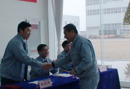 會(huì)上,總經(jīng)理孫龍平首先代表公司將節(jié)日的祝福帶給大家,然后通報(bào)了2008年工作的完成情況,并對(duì)完成2009年的任務(wù)目標(biāo)提出了要求。副總經(jīng)理劉擁民將2008年申報(bào)的各項(xiàng)貢獻(xiàn)獎(jiǎng)勵(lì)及評(píng)比情況進(jìn)行了通報(bào)。