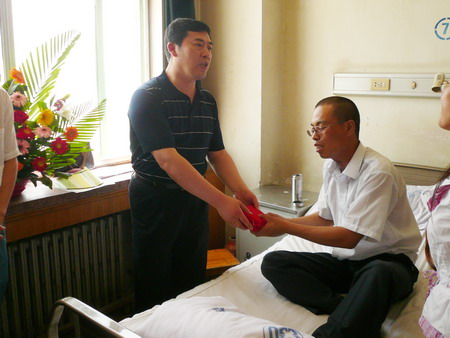 6月24日,公司總經(jīng)理孫龍平,黨總支書記張玉琴及人力資源部部長(zhǎng)姜作棟等一行,專程到德州人民醫(yī)院,將寄托著廣大員工深情厚誼的28150元捐款送到了孫富強(qiáng)的病榻前。鼓勵(lì)他要積極樂(lè)觀,堅(jiān)定戰(zhàn)勝病魔的信心,期盼著他早日康復(fù),重返工作崗位。