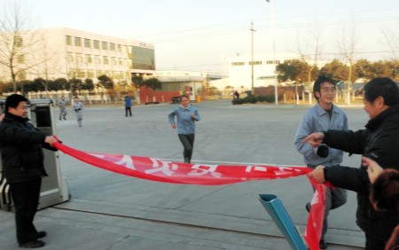 這是公司工會舉辦的第四屆長跑比賽,雖然天氣有些寒冷,但員工們的比賽熱情絲毫不減。比賽開始,工會主席張玉琴為大家鼓舞動員、講解規(guī)則,之后由副總經(jīng)理王興春發(fā)令比賽開始,比賽過程中大家奮勇拼搏,爭先恐后,都努力將自己堅強的一面展示出來。經(jīng)過激烈的角逐,生產(chǎn)部的楊大帥、翟海波,營業(yè)部的霍宏越取得男子組前三名,女子組的前三名分別是研發(fā)部的高俊娟、質(zhì)量部的張洪蕓和生產(chǎn)部的李芹。