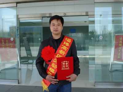 4月30日,淄博高新區(qū)勞動模范和先進工作者表彰大會在火炬大廈隆重舉行,我公司王光學(xué)同志被授予高新區(qū)“勞動模范”,并上臺領(lǐng)獎。