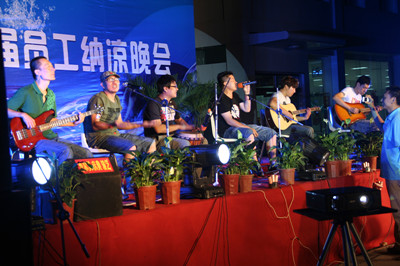 18:30分,晚會節(jié)目正式開始,首先在晨曦樂隊激情飛揚的搖滾歌曲聲中拉開了晚會的序幕。晚會節(jié)目有獨唱、小合唱、舞蹈等等,演員們的精彩表演,博得了員工們陣陣掌聲和喝彩。特別是生產(chǎn)部門女職工排練的舞蹈,動感十足,展示了女員工的多姿多彩的精神風貌。常務(wù)副總經(jīng)理王正軍的一曲豪邁的《紅旗飄飄》,抒發(fā)了荏原博泵員工的愛國情懷;北京事務(wù)所的王信東部長帶來了抒情歌曲《別問》;王虹權(quán)、袁磊、趙喜鵬、周新菊、肖旭、竇群、蔣祺、張雷雷、徐道義、董旭光等員工先后表演了自己準備的節(jié)目;職工子女表演的拉丁舞更是把晚會的氣氛推向高潮。