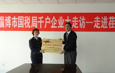 會上,舉行了授牌儀式,志賀進(jìn)總經(jīng)理從婁局長手中接過了淄博市國稅局頒發(fā)的 “依法納稅 強國惠民” 的牌匾。