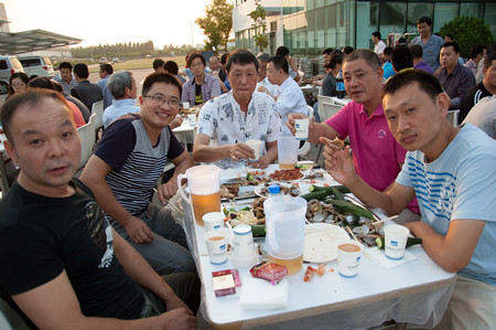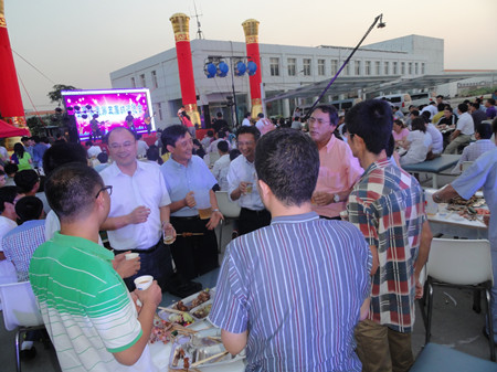 17:30,志賀進(jìn)總經(jīng)理端著酒杯,走到舞臺前,首先感謝廣大員工的辛勤努力,使公司取得很好的業(yè)績,隨著一聲“干杯”,荏原博泵第五屆納涼晚會拉開了序幕。公司380多名員工,分部門有序而坐,大家推杯換盞,興高采烈。公司領(lǐng)導(dǎo)挨桌給員工們敬酒,大家沒有了上下級的拘謹(jǐn),一派歡樂祥和的景象。