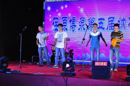 18:00,文藝演出正式開始,首先是搖滾樂隊(duì)帶來的勁爆歌曲,將晚會現(xiàn)場帶入了熱烈的氛圍。晚會上,有抒情懷舊的經(jīng)典老歌,有驚艷柔美的女工舞蹈,有激情四射的魅力街舞,還有新員工自編自演的三句半,更有抒發(fā)對公司深厚情感的詩朗誦《騰飛吧,荏原博泵》。有公司領(lǐng)導(dǎo)的獻(xiàn)唱,有普通員工的表演。每一個(gè)節(jié)目,都凝聚了員工的心聲,每一個(gè)節(jié)目都飽含了員工的熱情。在晚會上,公司常務(wù)副總經(jīng)理王正軍先生深情地說;今天是個(gè)歡樂的日子,荏原博泵歷經(jīng)八年的發(fā)展,從現(xiàn)在開始已經(jīng)步入了健康發(fā)展的軌道。今年公司訂單已達(dá)五個(gè)億,下一步就是生產(chǎn)、制造、交貨要交給在座各位,希望大家就像一臺機(jī)器的每個(gè)部件一樣,齊心協(xié)力配合好,公司的經(jīng)營成果會與大家共享!王總也一改往日的豪情,演繹了一首《風(fēng)往北吹》,表現(xiàn)了一個(gè)鐵血男兒柔情的一面。
